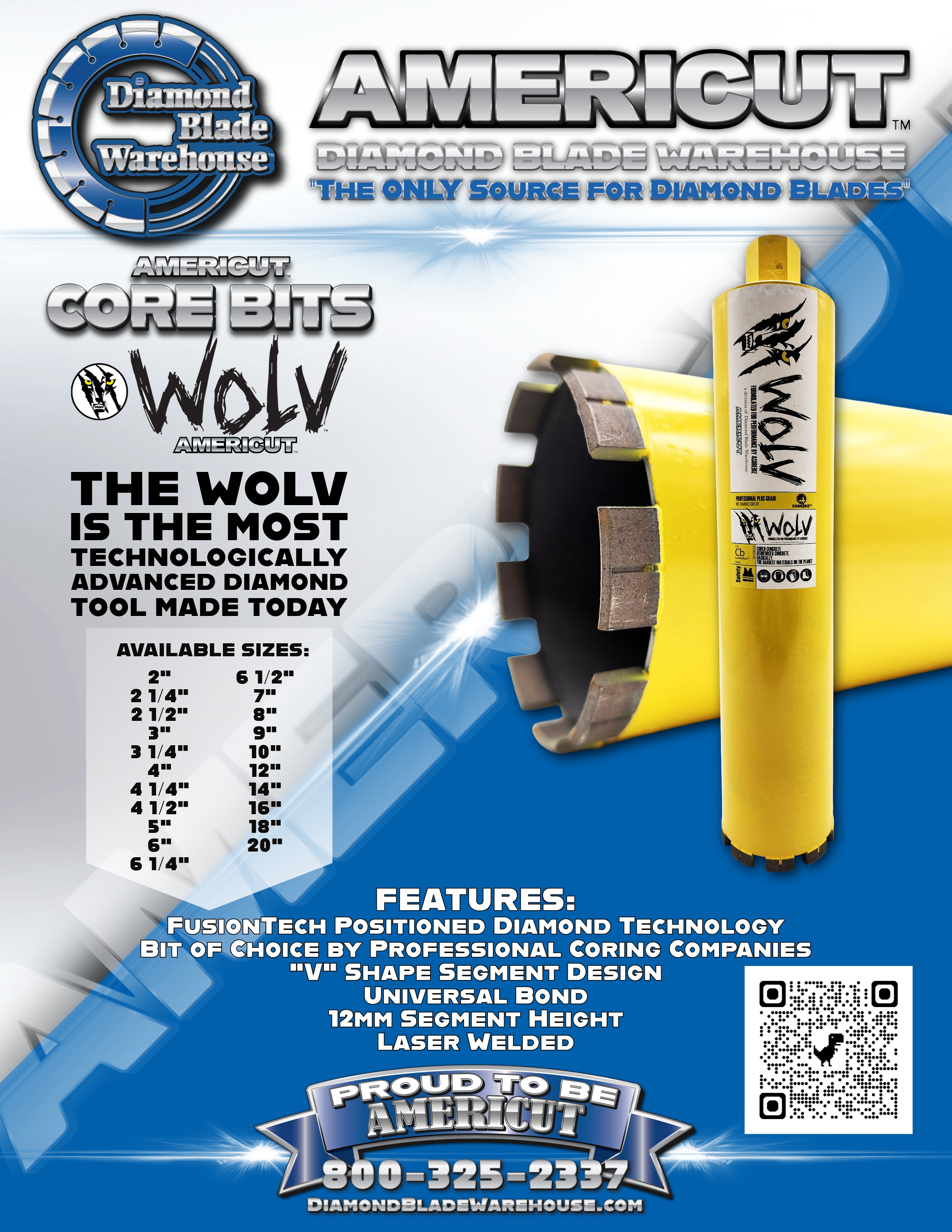 The Wolv is the Original WORLDWIDE SUPER CORE BIT! It is made from the highest quality diamond in the business and a special 35/45 mesh with patterned diamond mixed in with cobalt and tungsten. This is the most technologically advanced diamond tool made today. It is undoubtedly one of the best core bits ever made.
